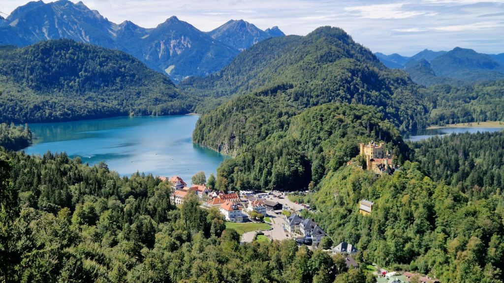Pur essendo più piccolo e meno appariscente, è un luogo cruciale e bellissimo, legato a doppio filo alla storia del suo vicino. Fu la residenza d’infanzia di Ludovico II, dove trascorse gran parte della sua vita e maturò l’amore per il Medioevo, le saghe e le leggende che avrebbero poi ispirato il suo capolavoro. L’edificio originale era una fortezza medievale in rovina che Massimiliano II, il padre di Ludovico, acquistò e trasformò in un magnifico palazzo neogotico a partire dal 1832. L’interno di Hohenschwangau è uno splendido esempio di stile Biedermeier e romanticismo; le pareti sono affrescate con scene di leggende medievali tedesche, come quella del Cigno Cavaliere Lohengrin, che ebbero un’enorme influenza sul giovane Ludovico II. Dalle sue finestre, il re poteva osservare l’avanzamento dei lavori del suo castello dei sogni. La visita si svolge esattamente come nel museo precedente.