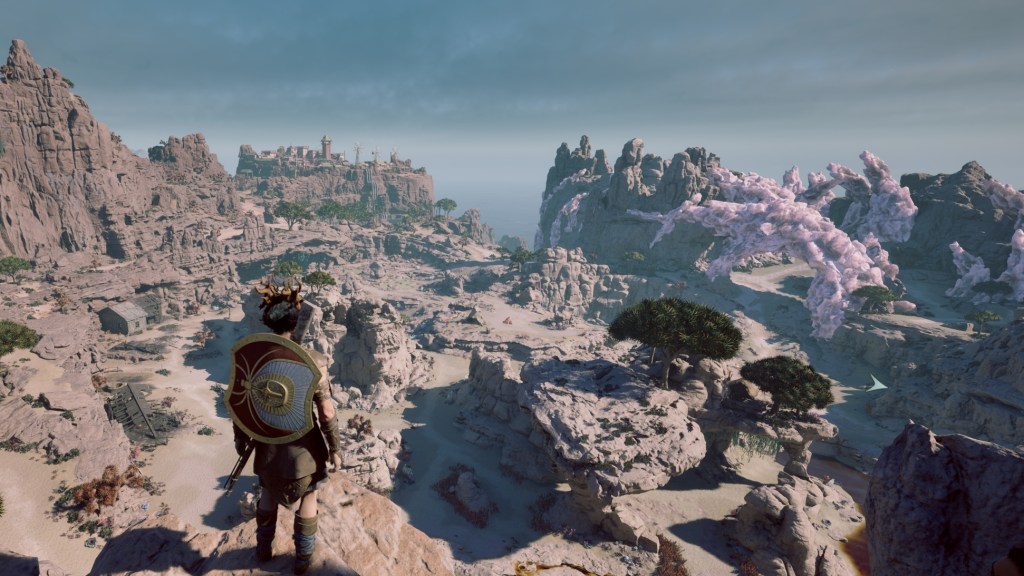 Quanto detto fino ad ora è immerso, senza dubbio, in un mondo di gioco ben curato. Ogni regione ha le sue peculiarità e i suoi luoghi caratteristici, tutte le aeree sono molto verticali e il dettaglio grafico è veramente ottimo, merito dell’Unreal Engine 5. Purtroppo questo motore grafico permette poca interazione con l’ambiente esterno e si ha sempre la sensazione che sia tutto bello da vedere ma estremamente inanimato. La direzione artistica è sicuramente particolare, dove però una palette di colori utilizzata sui toni sgargianti e un un uso molto intenso di un sistema di illuminazione daranno sempre la sensazione di essere in un dipinto animato invece che in un ambiente ostile. Avrebbe anche giovato l’utilizzo di qualche cutscene o di qualche animazione in engine per dare un po’ di spessore a tutte le vicende.